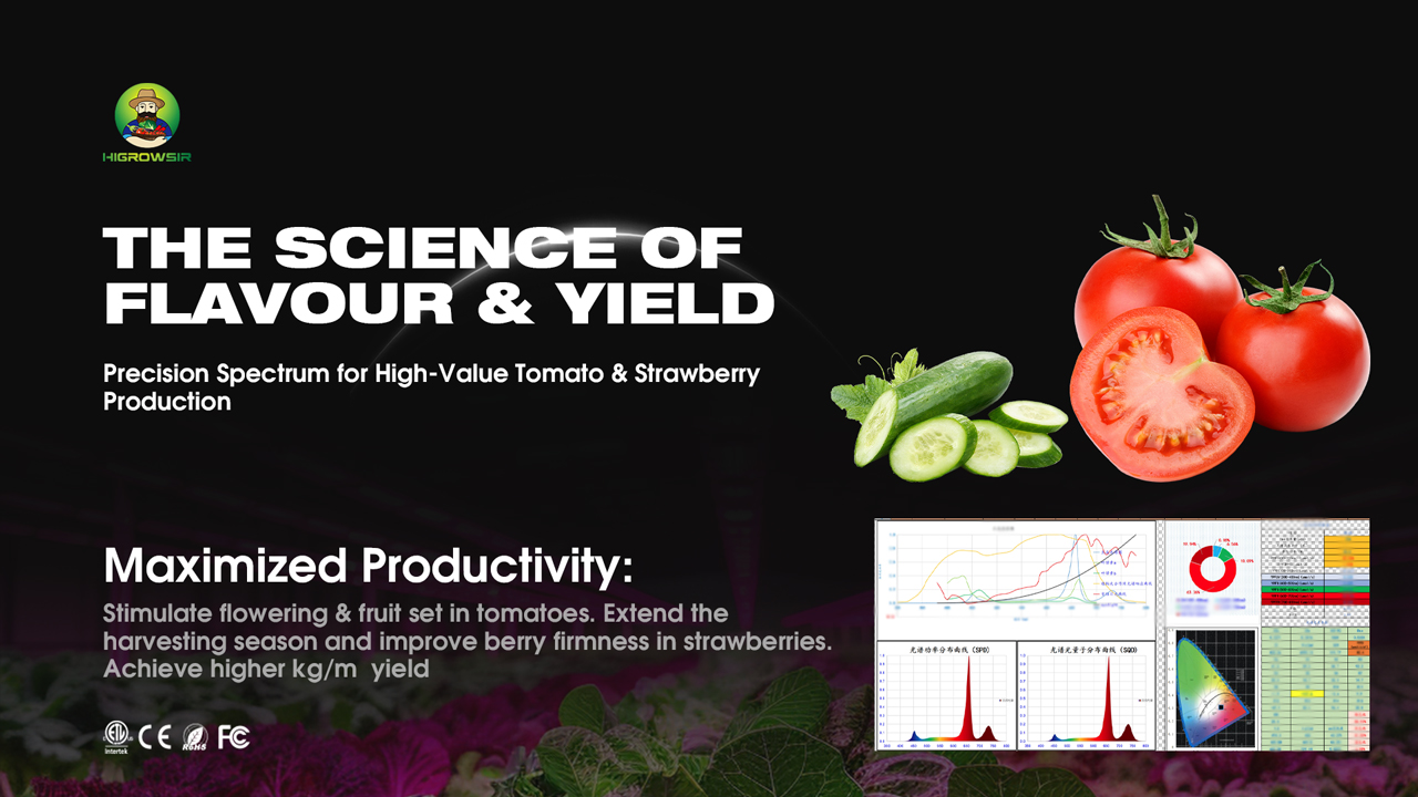 Customizable Spectrum: The light spectrum can be tailored to different growth stages of crops like tomatoes and cucumbers, providing a precise "light recipe" for specific needs